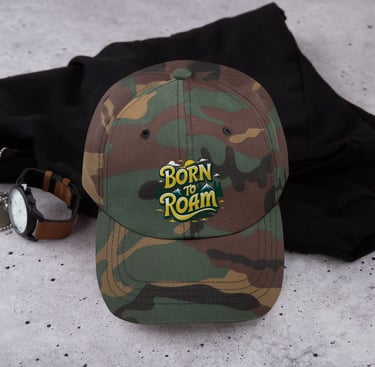 “Born to Roam” camo hat is a classic outdoor trucker cap designed for men and women who enjoy camping, hiking, hunting, and everyday outdoor activities.